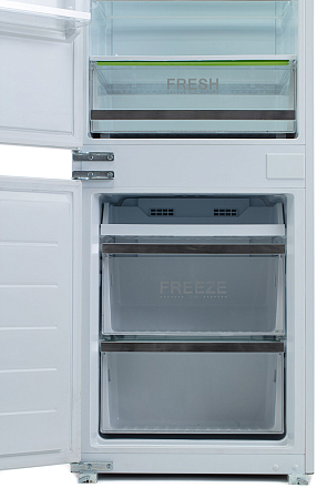 Экономичная модель (класс A+) с технологией No Frost. Полезный объем 247 л (180 л холодильное + 67 л морозильное отделение). Светодиодное освещение, 4 полки и специальный бокс для овощей/фруктов. Функция суперзаморозки. Автономное сохранение холода до 10 часов при отключении электроэнергии.