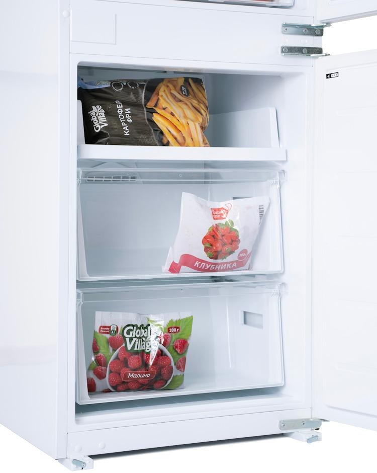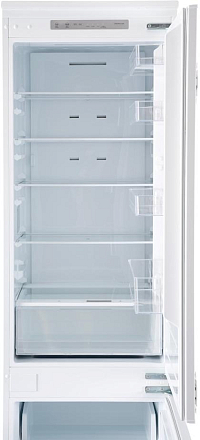 Современный холодильник с системой No Frost (общий объем 267 л). Энергопотребление класса A++. Удобное электронное управление с дисплеем. Вместительная система хранения с 4 стеклянными полками и 2 ящиками для овощей. Сигнализация открытой двери. Оптимальное решение для семьи - 195 л холодильное + 72 л морозильное отделение.