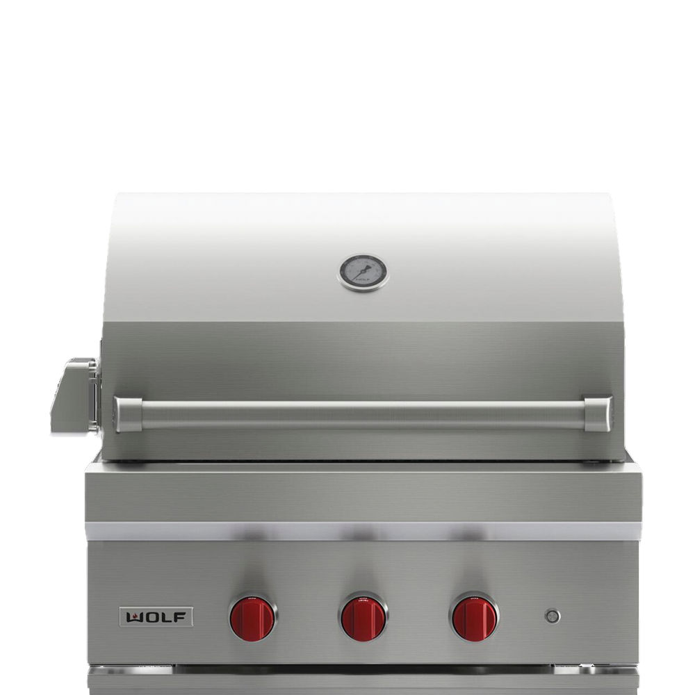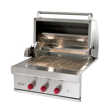 Подобно аналогичным грилям для использования дома газовые грили Wolf для использования вне помещения сохраняют те же характеристики элементов, изготовленных из высокопрочной стали. Данный гриль шириной 762 мм имеет мощные конфорки через каждые 127 мм