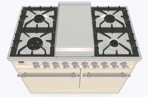• Тип конфорок: 4 газовые конфорки, Dual конфорка, жарочная поверхность Fry Top