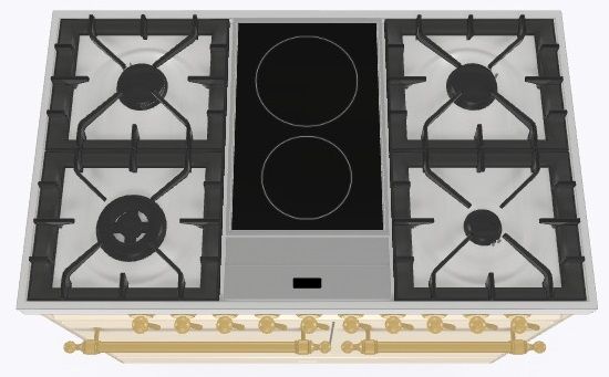 2 индукционные, 4 газовые, 1 Dual конфорка