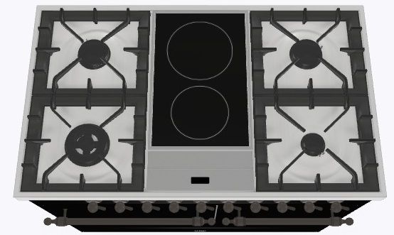 2 индукционные, 4 газовые, 1 Dual конфорка