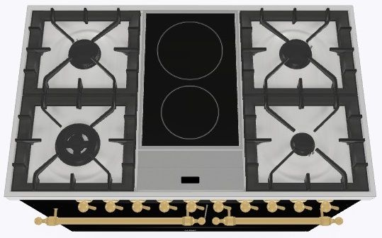2 индукционные, 4 газовые, 1 Dual конфорка