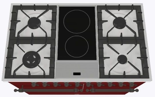 2 индукционные, 4 газовые, 1 Dual конфорка