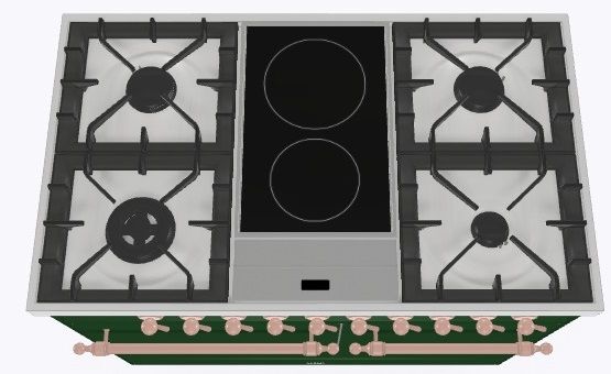 2 индукционные, 4 газовые, 1 Dual конфорка