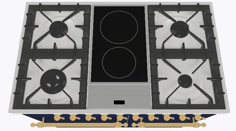 2 индукционные, 4 газовые, 1 Dual конфорка