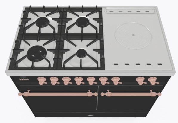 • Тип конфорок: 4 газовые конфорки, WOK конфорка, жарочная поверхность Coup de Feu