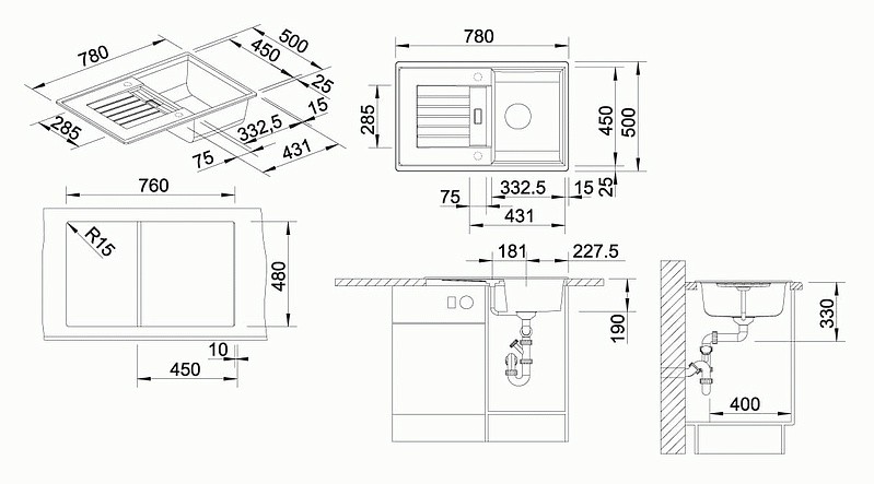 Компактная мойка из искусственного камня Silgranit PuraDur премиального качества создана для небольших кухонных пространств. Ее эргономичные размеры позволяют удобно разместить мойку в кухонном шкафу шириной 45 см, что делает ее идеальным решением для малогабаритных кухонь.